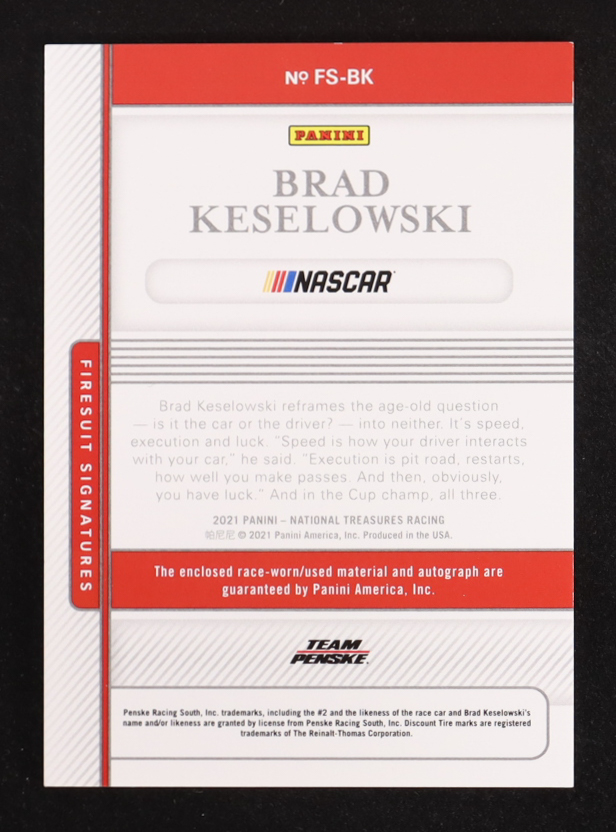 Brad Keselowski 2021 Panini National Treasures Firesuit Signatures #13 #05/10