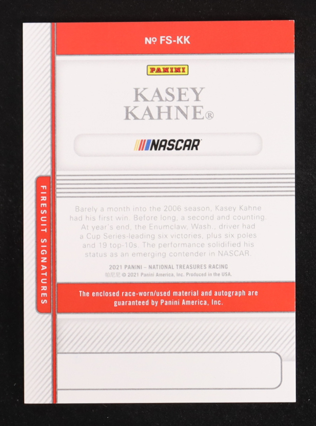 Kasey Kahne 2021 Panini National Treasures Firesuit Signatures Silver #26 #13/25