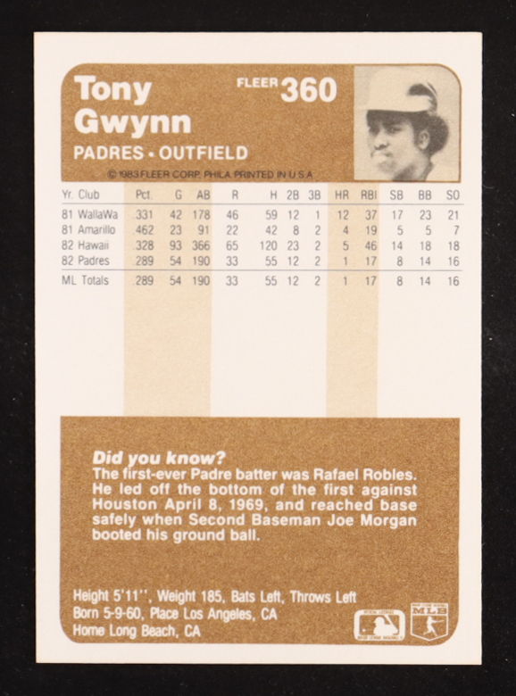 Tony Gwynn 1983 Fleer #360 RC