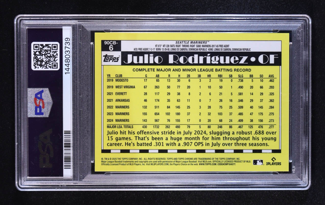 Julio Rodriguez 2025 Topps Chrome '90 Topps Gold Refractors #90CB6 #26/50 (PSA 9)