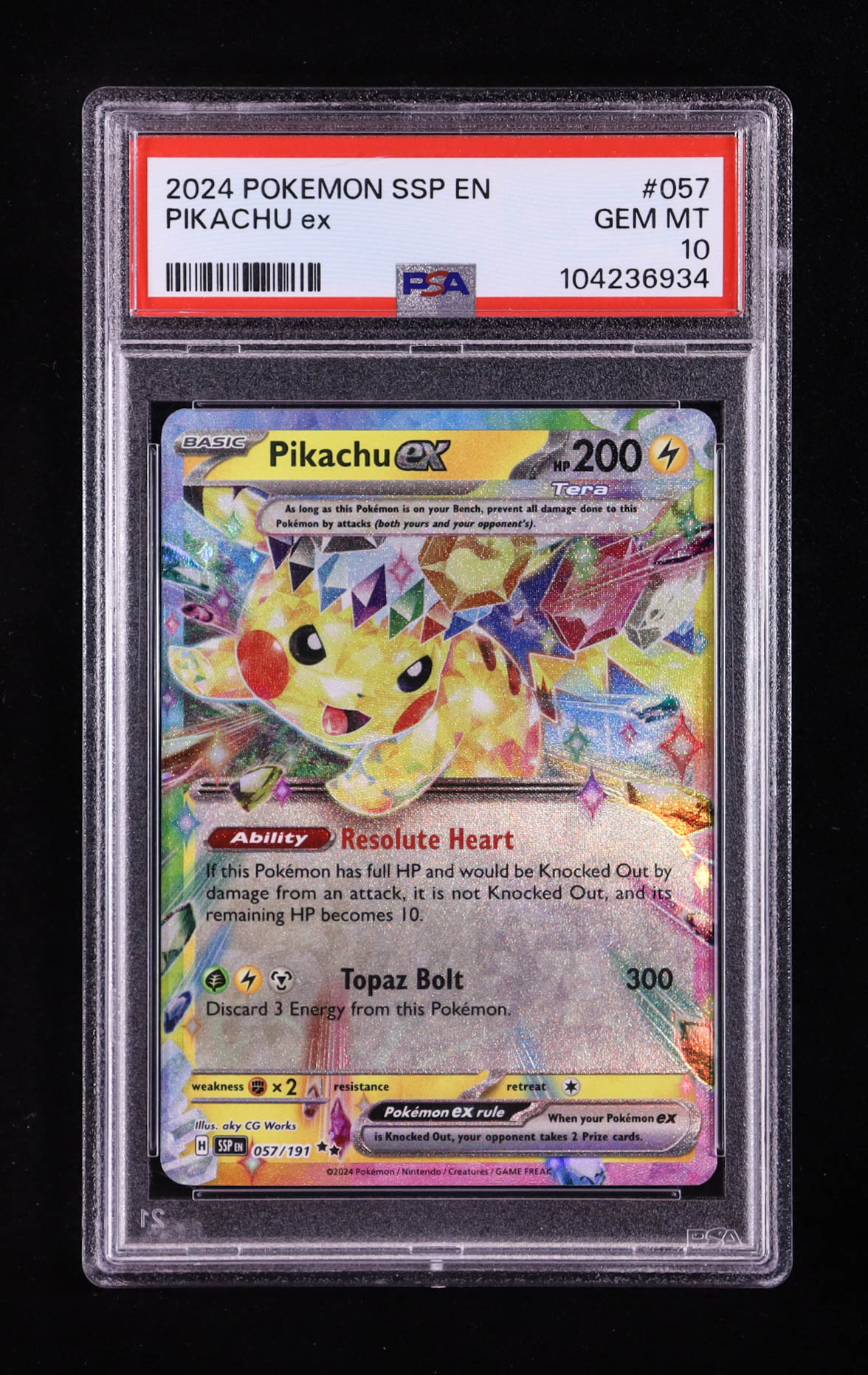 Pikachu ex 2024 Pokemon TCG Scarlet & Violet Surging Sparks #057 (PSA 10)