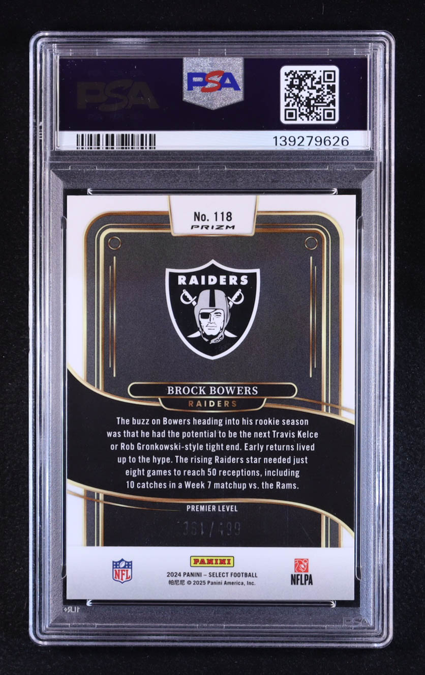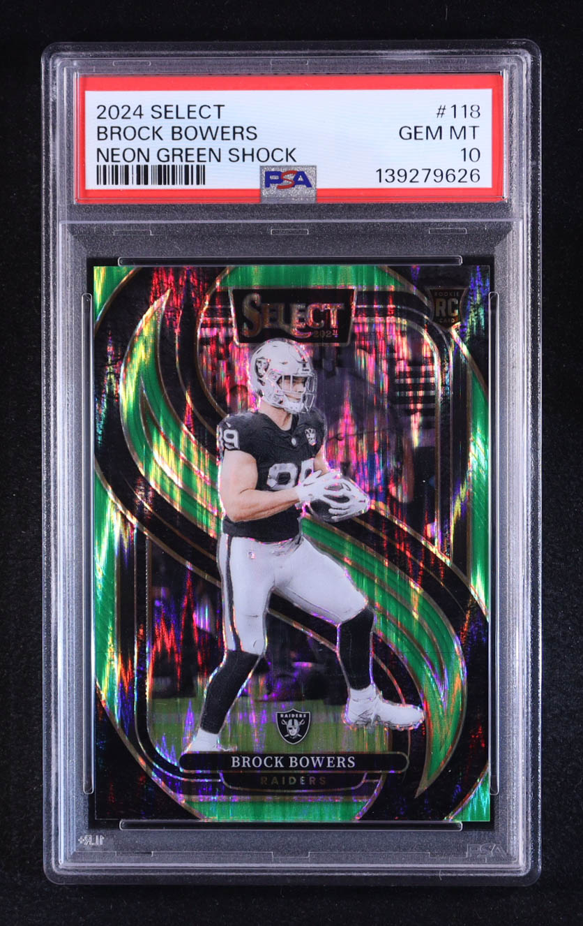 Brock Bowers 2024 Select Prizm Neon Green Shock #118 RC #361/499 (PSA 10)