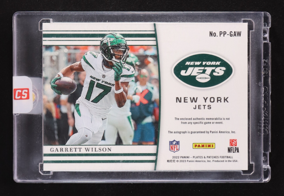 Garrett Wilson 2022 Panini Chronicles Plates and Patches Rookie Jersey Autograph Prime #4 #08/25 RC