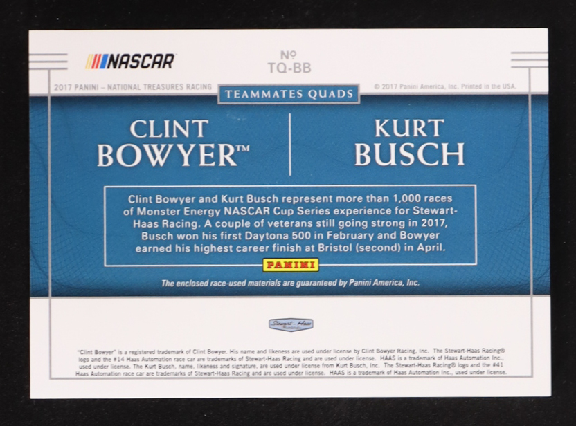 Clint Bowyer / Kurt Busch 2017 Panini National Treasures Teammates Quad Materials Green #6 #4/5