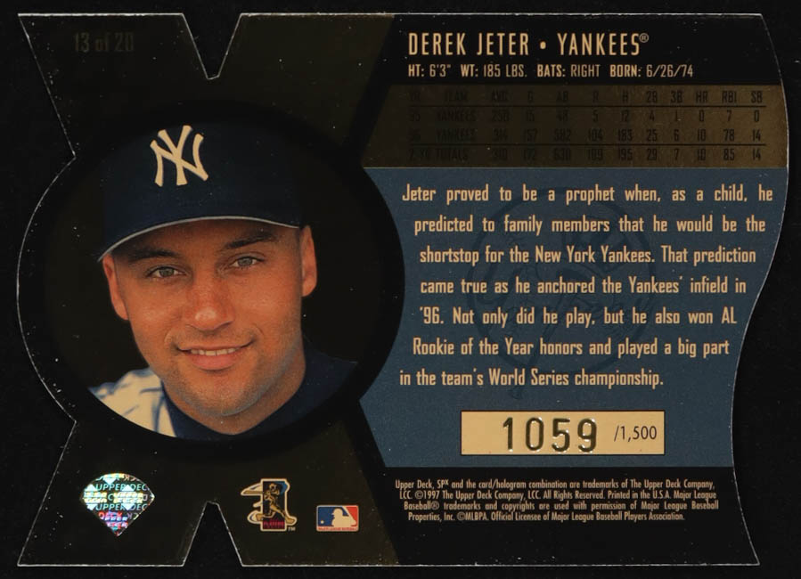 Derek Jeter 1997 SPx Bound for Glory #13 #1059/1500