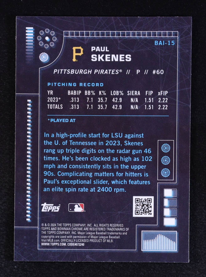 Paul Skenes 2024 Bowman Chrome Bowman AI #BAI15 RC