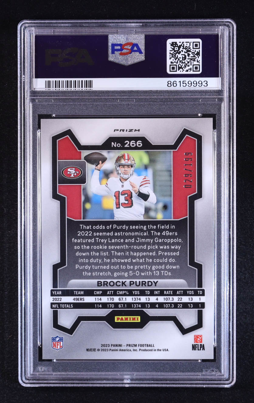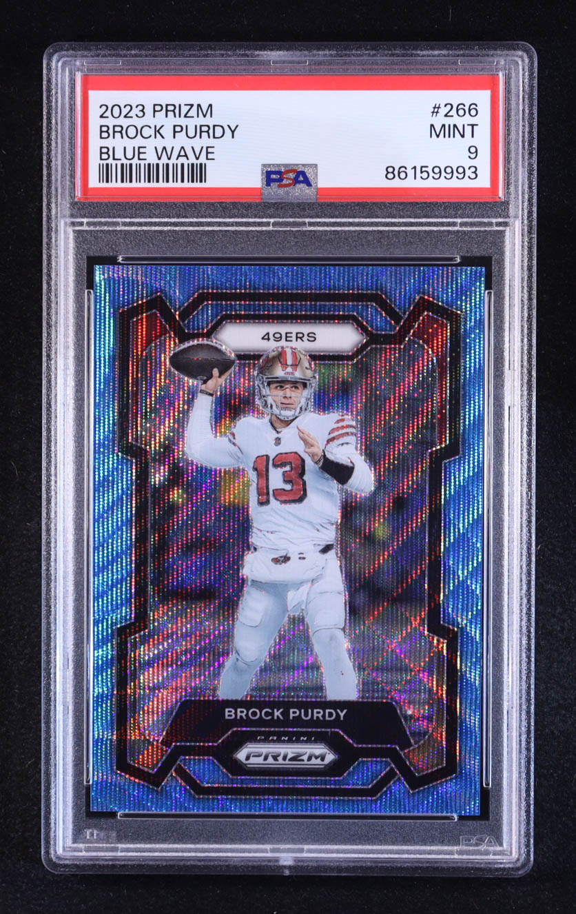 Brock Purdy 2023 Panini Prizm Prizms Blue Wave #266 #029/199 (PSA 9)