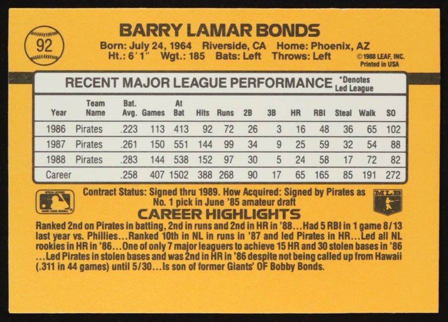 Barry Bonds 1989 Donruss #92