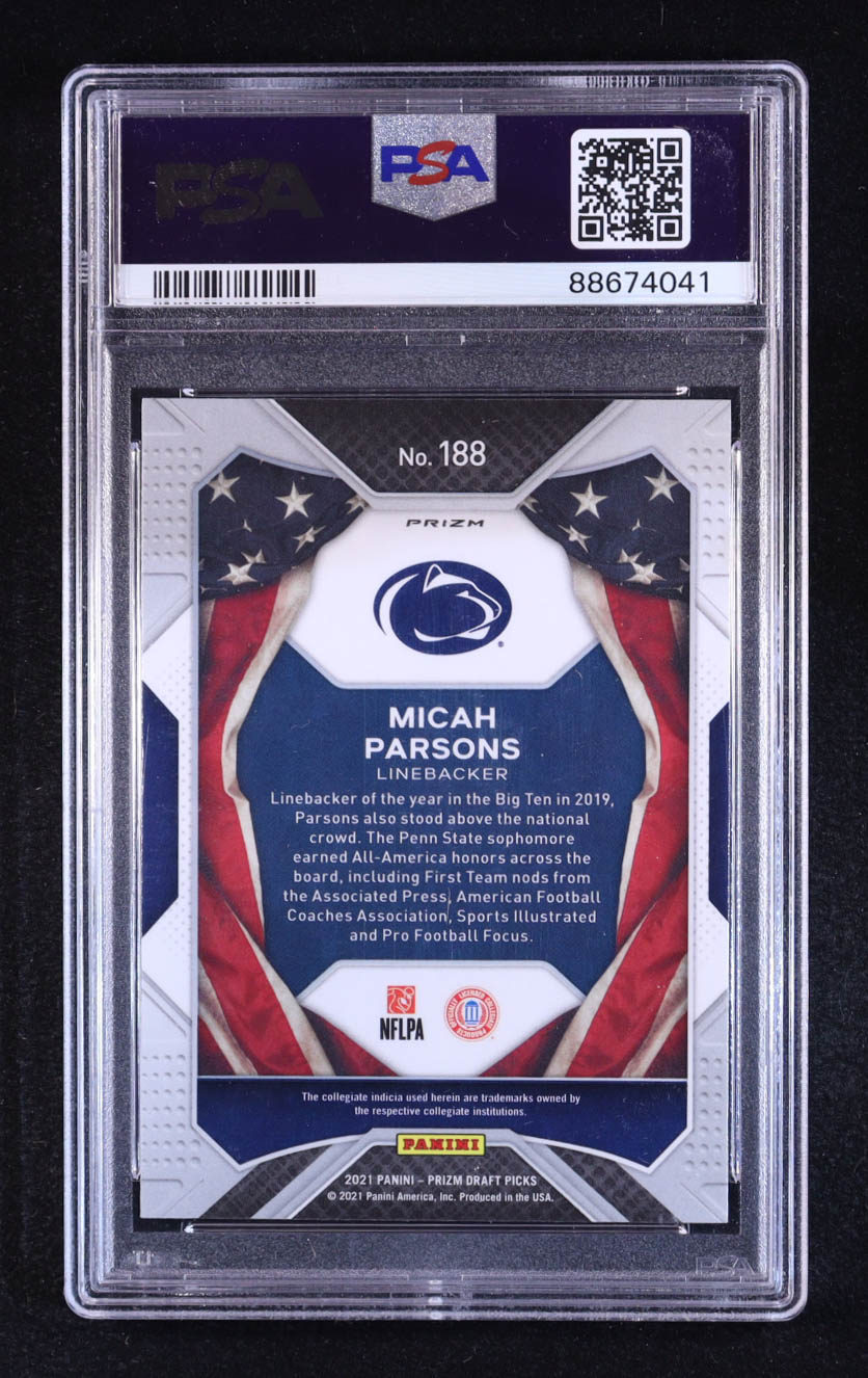 Micah Parsons 2021 Panini Prizm Draft Picks Prizms Green Wave #188 AA RC (PSA 10)