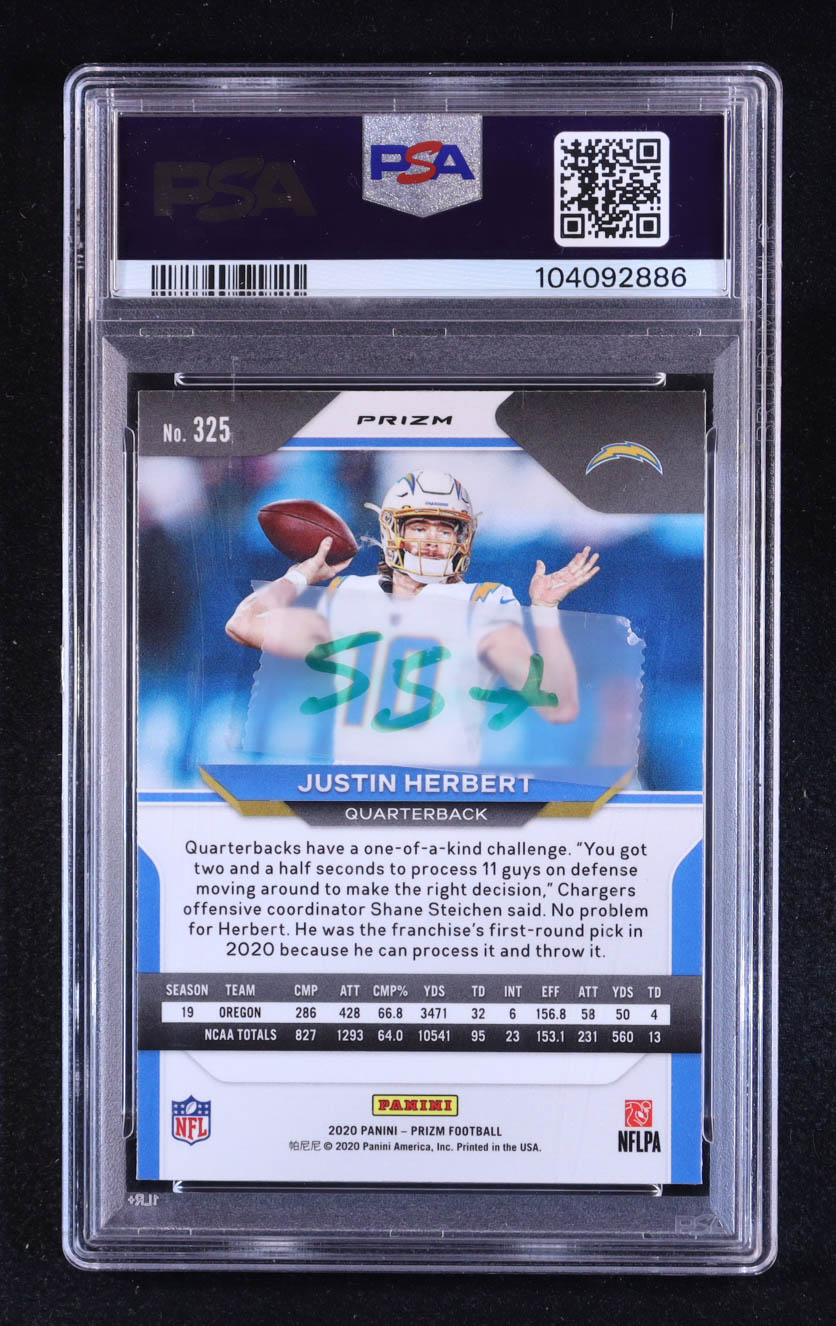 Justin Herbert 2020 Panini Prizm Prizms Red White and Blue #325 RC (PSA 9)