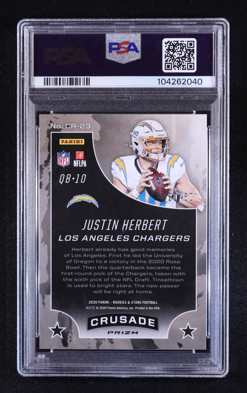 Justin Herbert 2020 Rookies and Stars Crusade Pink #23 RC #20/50 (PSA 9)