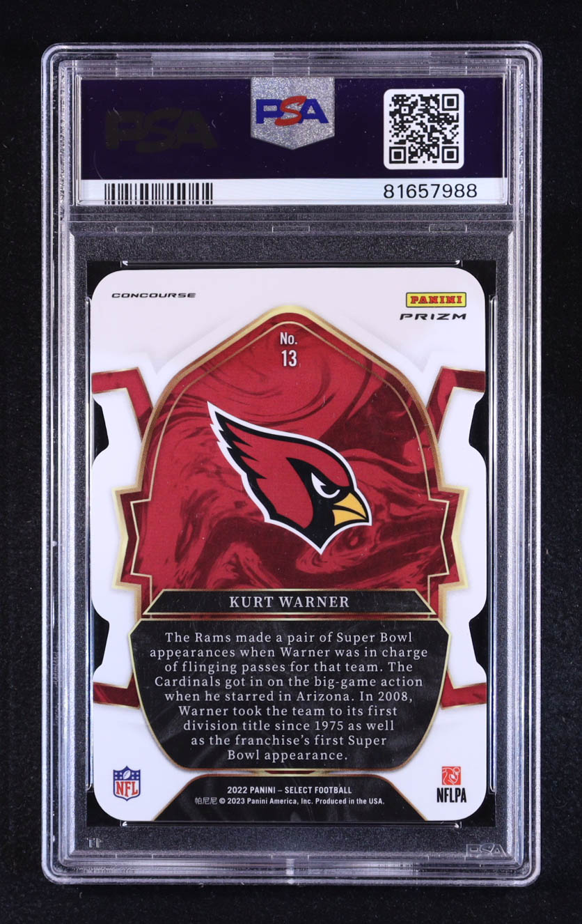 Kurt Warner 2022 Select Prizm Green and Yellow Die Cut #13 (PSA 10)
