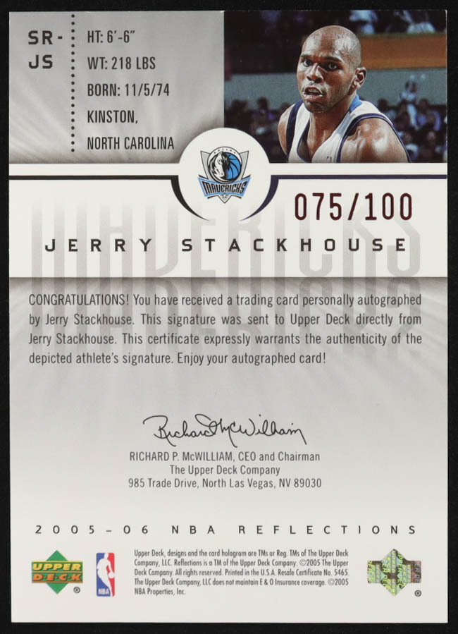 Jerry Stackhouse 2005-06 Reflections Signatures Red #JS #075/100