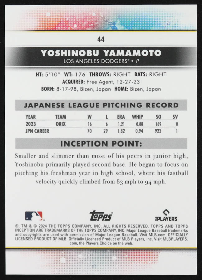 Yoshinobu Yamamoto 2024 Topps Inception #44 RC