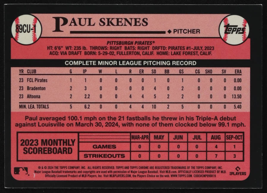 Paul Skenes 2024 Topps Chrome Update '89 Topps #89CU1 RC