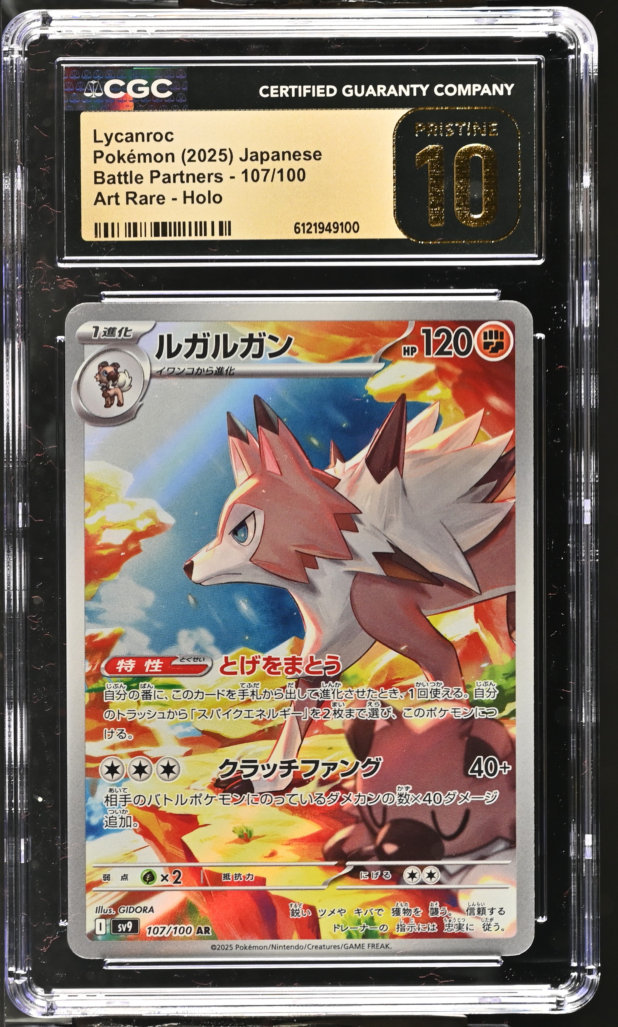 Lycanroc 2025 Battle Partners Art Rare Holo #107100 (CGC 10 | Black Label)