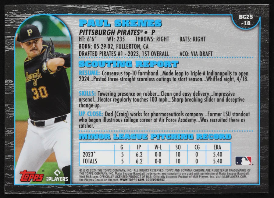 Paul Skenes 2024 Bowman Chrome '99 Bowman Chrome 25th Anniversary #BC2518 RC
