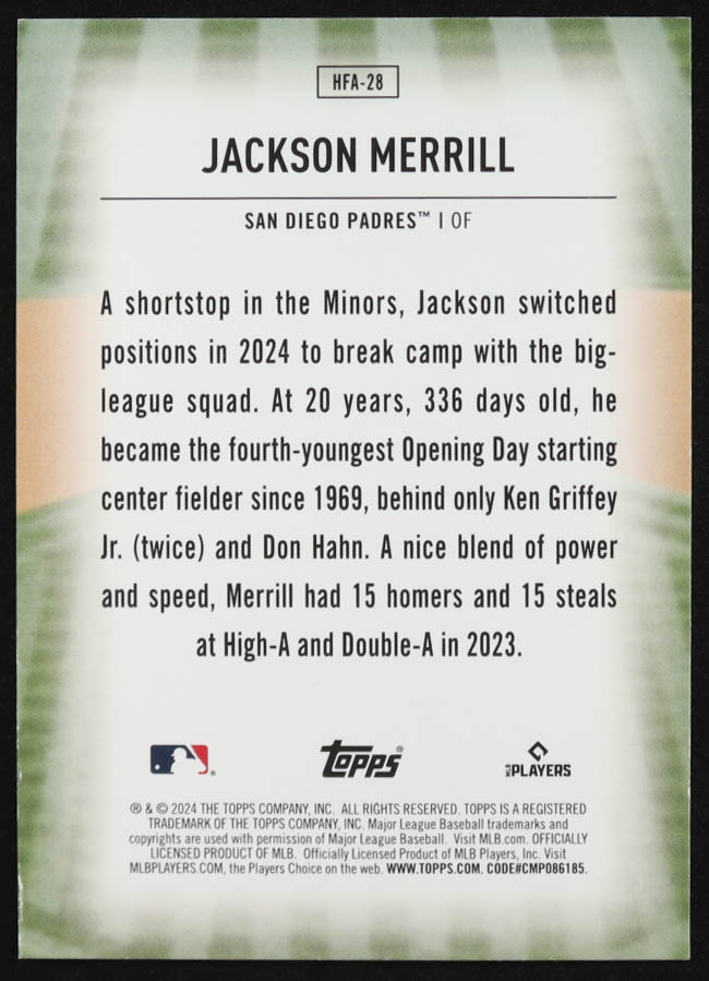 Jackson Merrill 2024 Topps Home Field Advantage #HFA28 RC