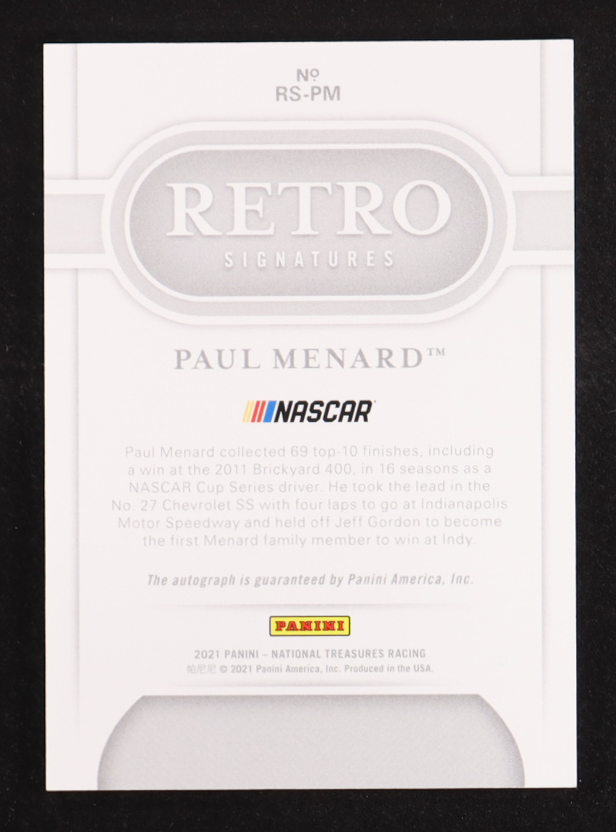 Paul Menard 2021 Panini National Treasures Retro Signatures Holo Silver #2 #06/15