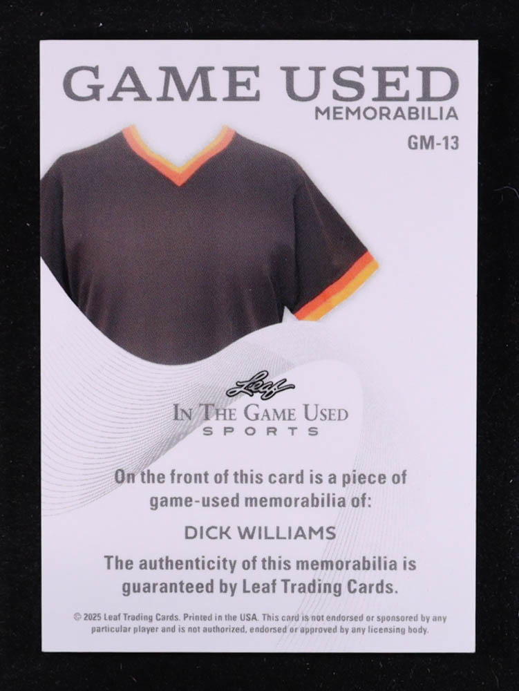 Dick Williams 2025 Leaf ITG Used Sports Game Used Memorabilia Sparkle Silver #GM13 #18/30
