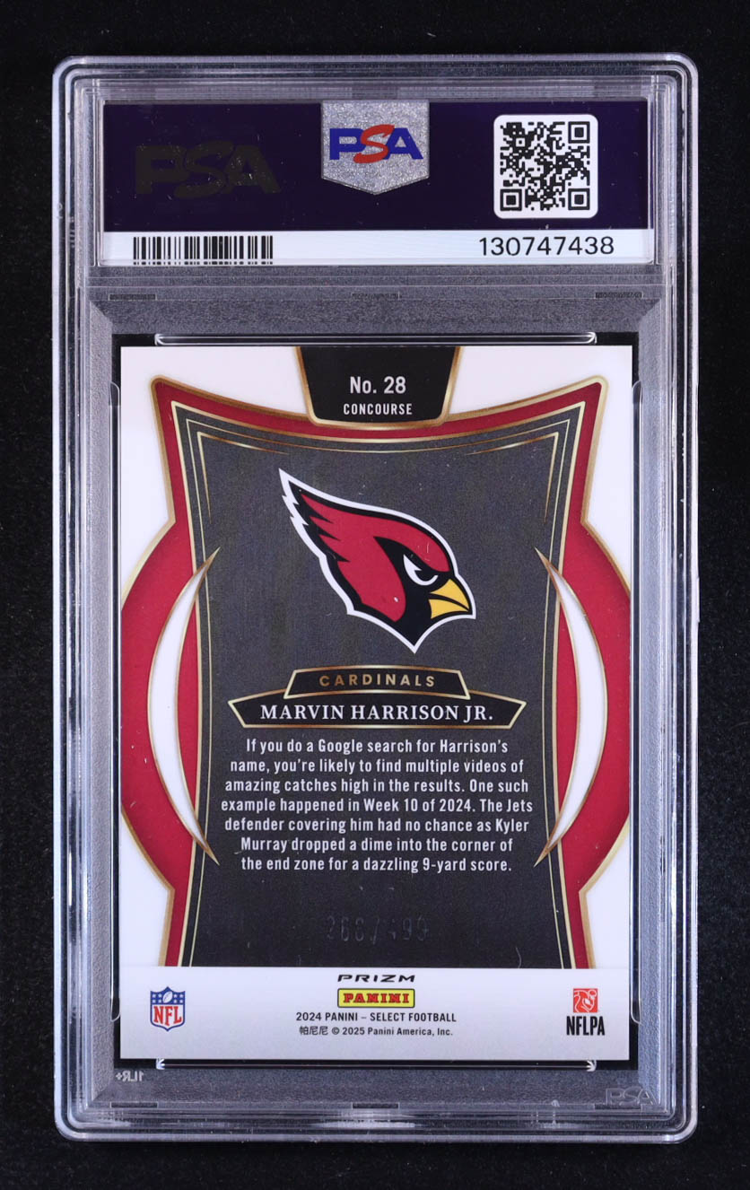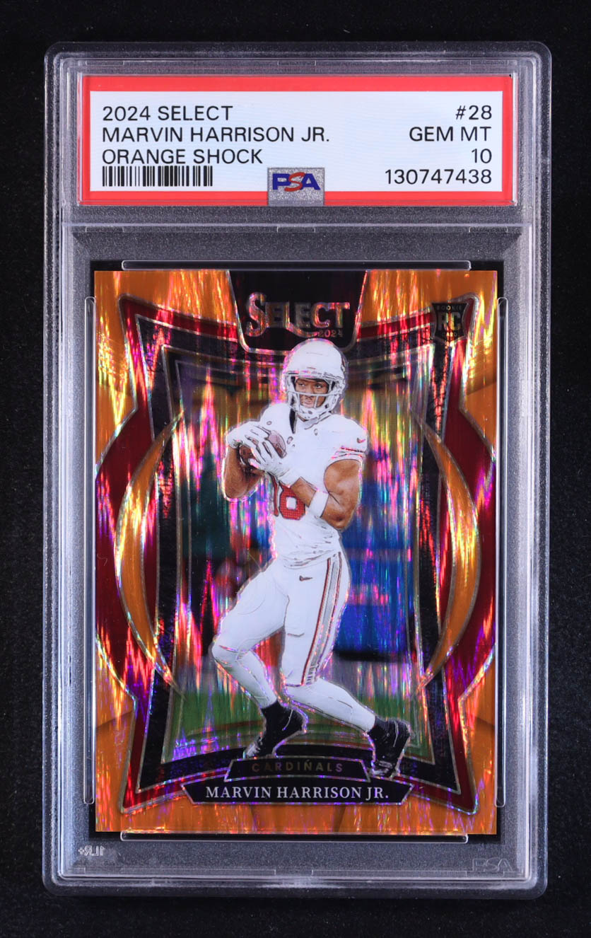 Marvin Harrison Jr. 2024 Select Prizm Orange Shock #28 RC #268/499 (PSA 10)