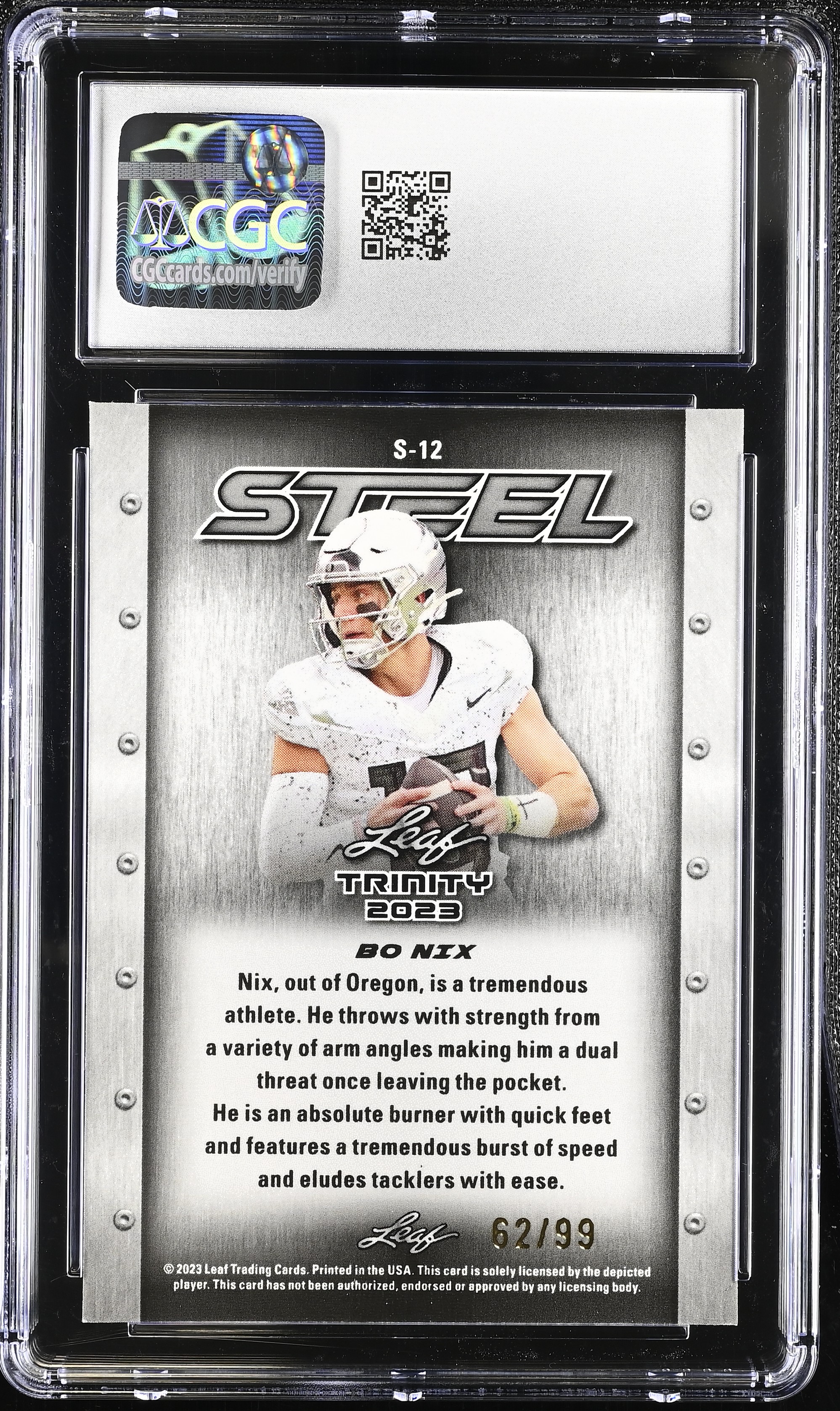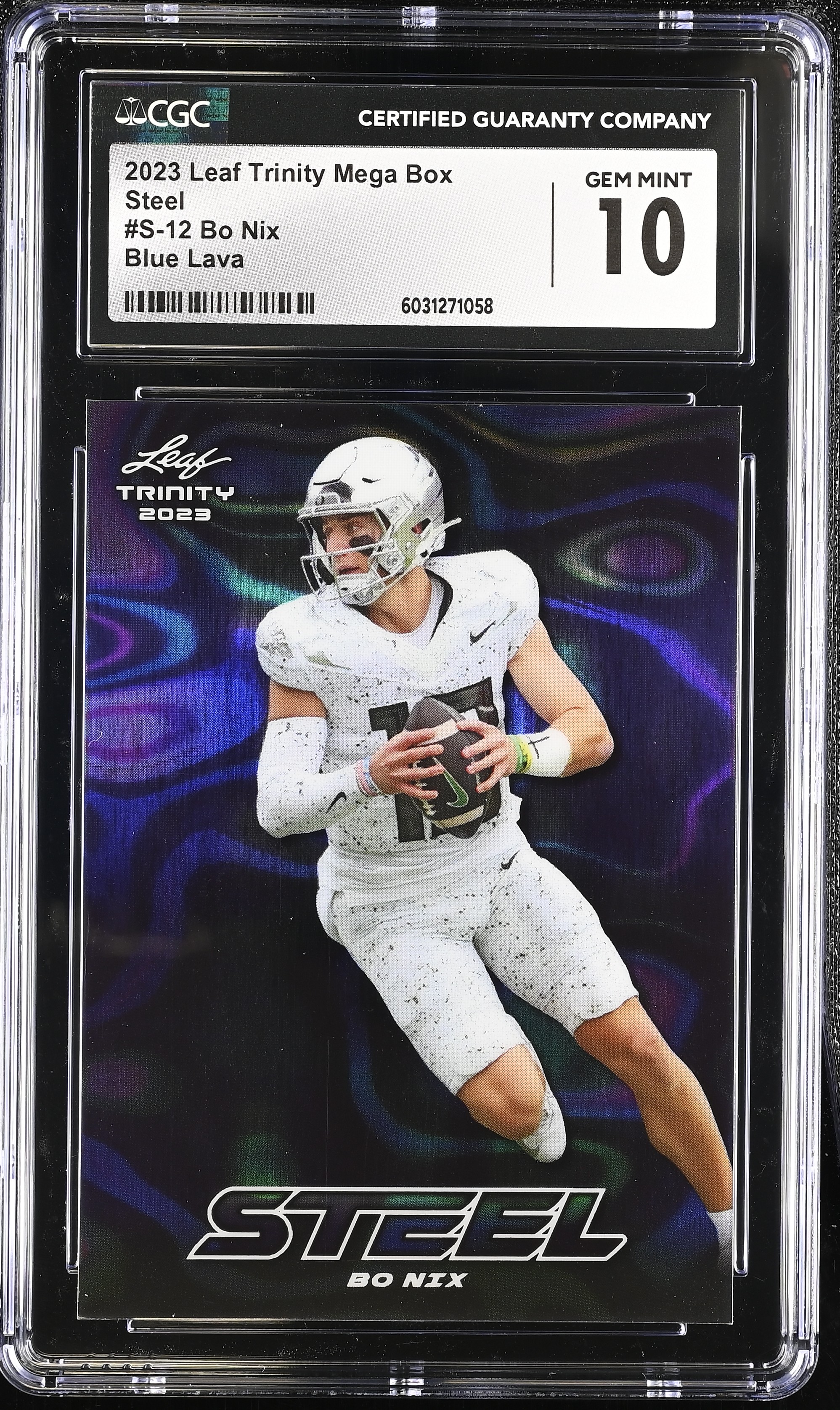 Bo Nix 2023 Leaf Trinity Mega Box Steel Blue Lava #12 #62/99 RC (CGC 10)