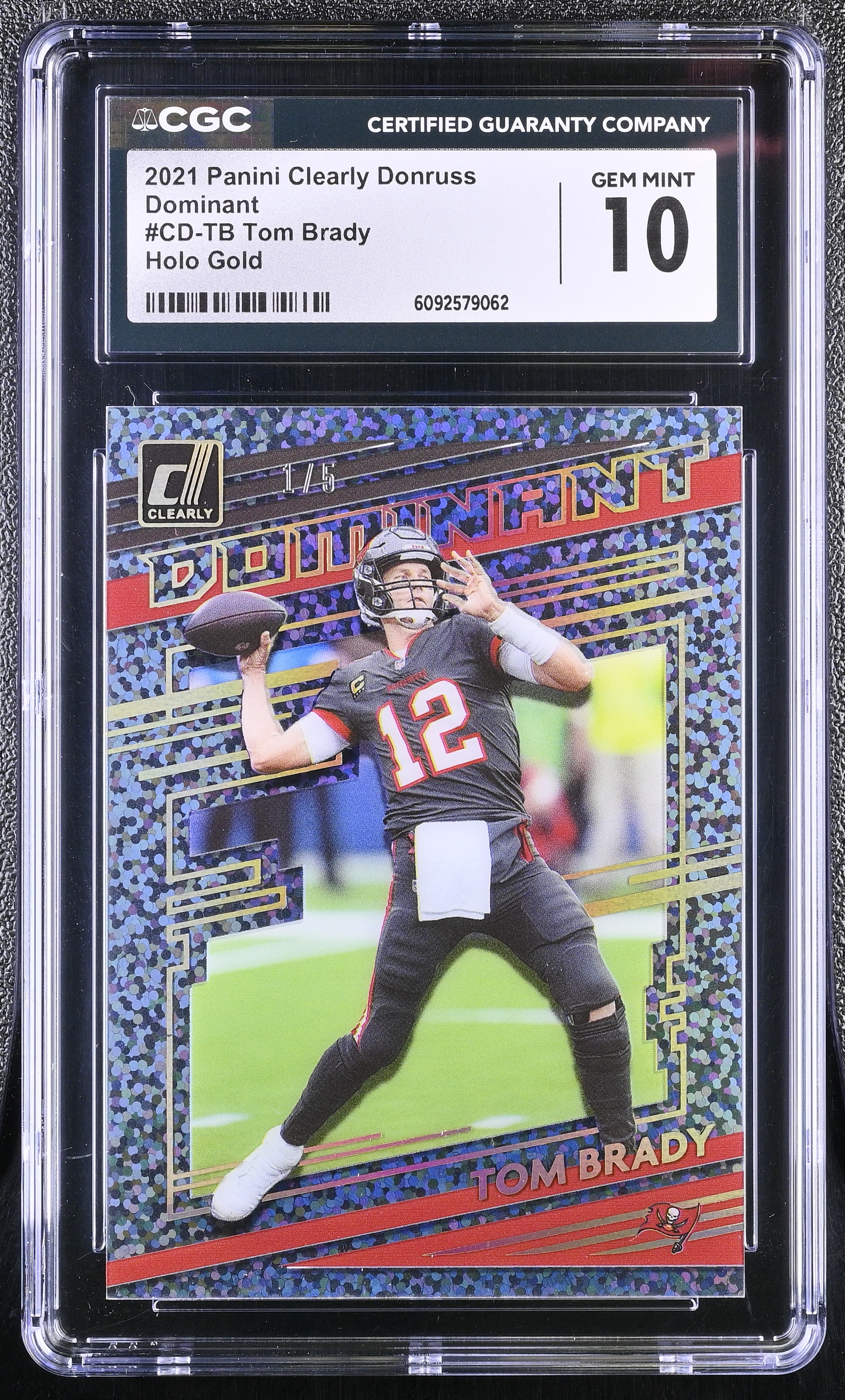 Tom Brady 2021 Panini Clearly Donruss Dominant Holo Gold #1 #1/5 (CGC 10)