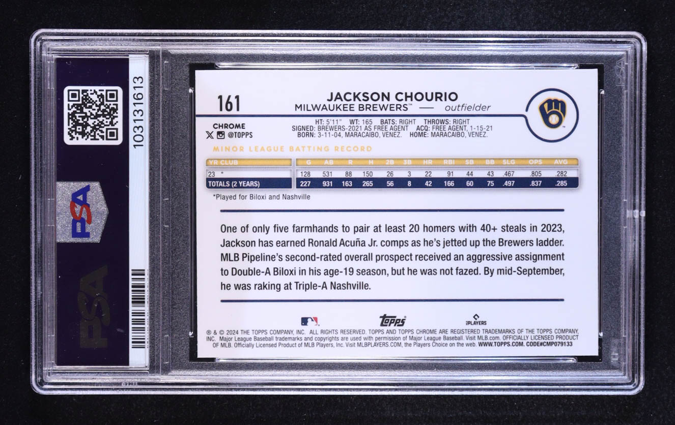 Jackson Chourio 2024 Topps Chrome Logofractor #161 RC (PSA 10)