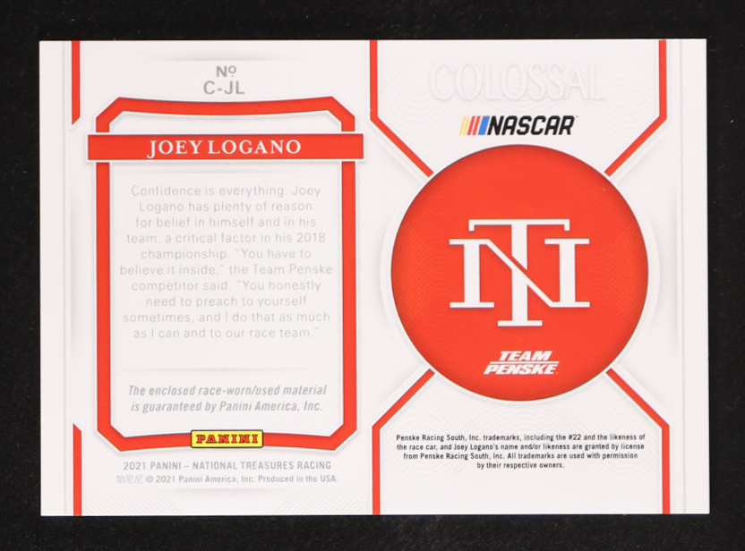 Joey Logano 2021 Panini National Treasures Colossal Race Used Firesuits #16 #02/25