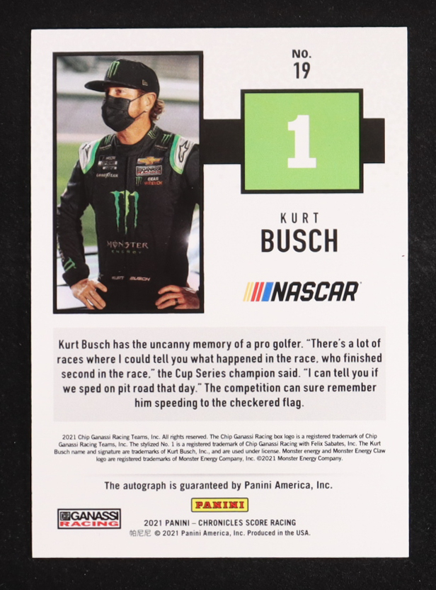 Kurt Busch 2021 Panini Chronicles Score Autographs Gold #19 #05/10