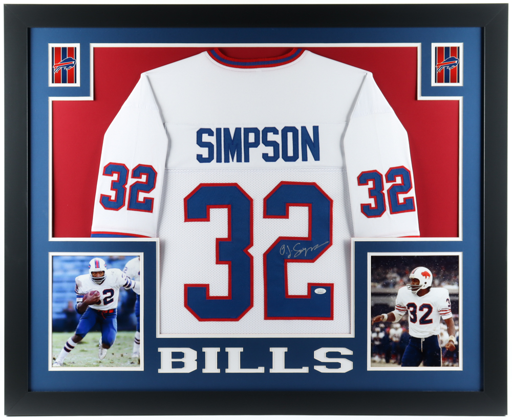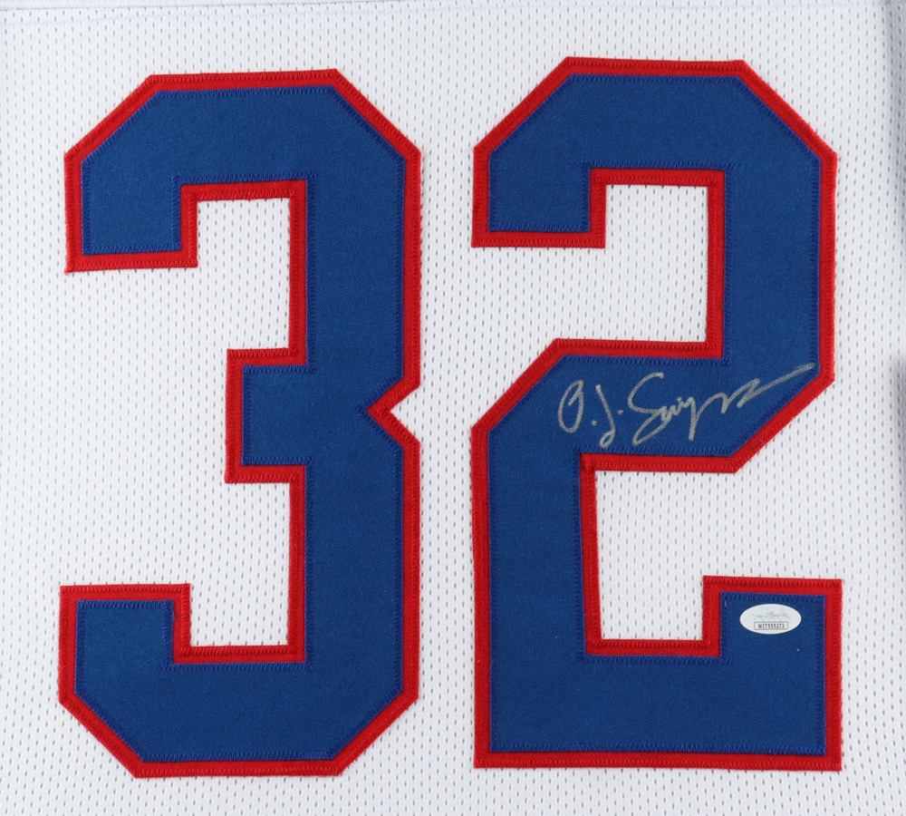 Custom frame measures approximately 35" x 43" in size and features a jersey hand-signed by O. J. Simpson (HOF).