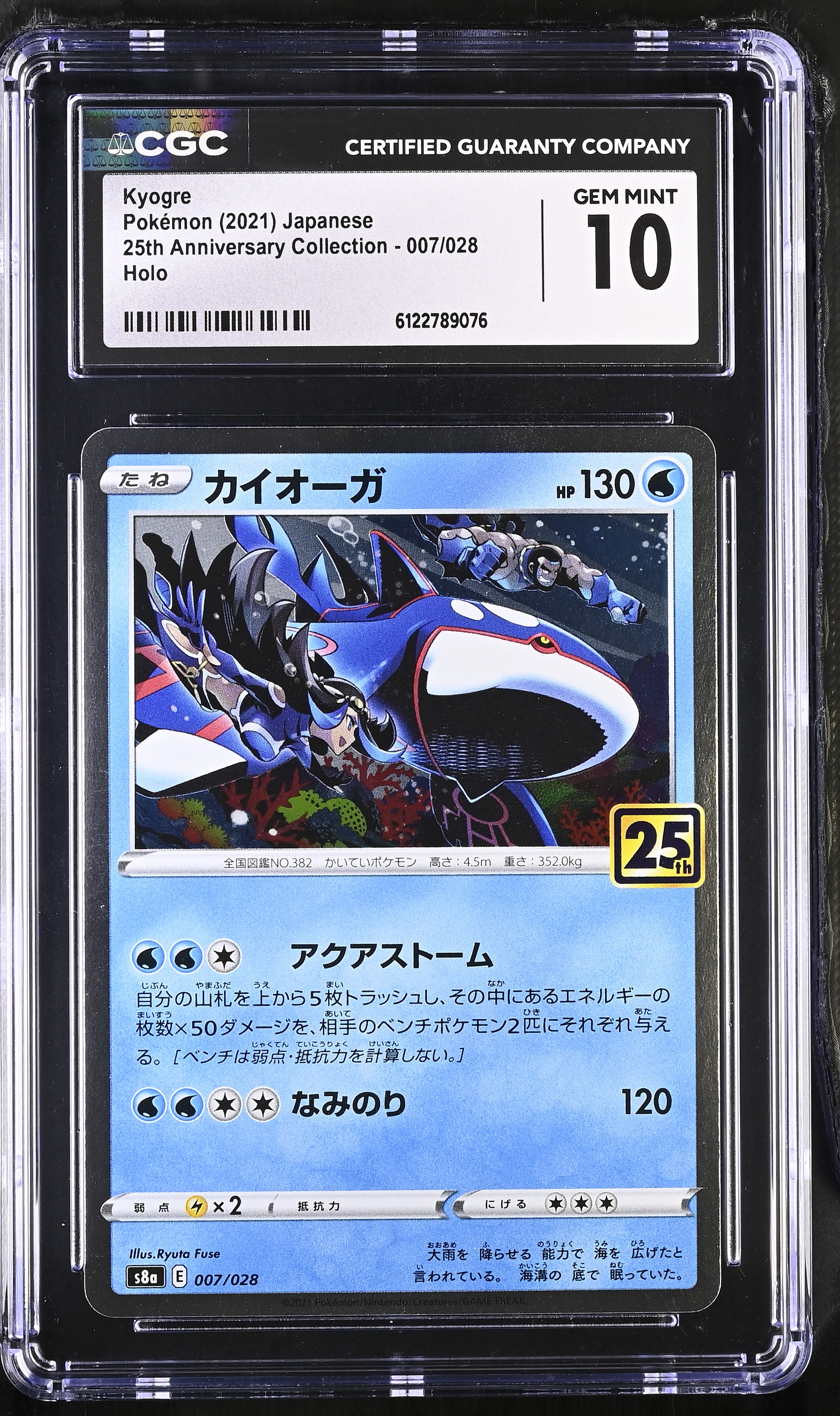 Kyogre 2021 Pokemon Card Game Sword & Shield 25th Anniversary Collection Japanese Holo #007 (CGC 10)