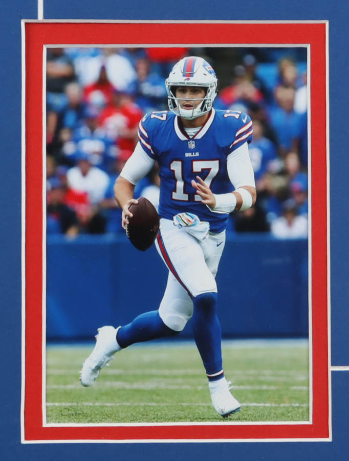Custom frame measures approximately 32" x 41.5" in size and features a jersey that has been hand-signed by Josh Allen.