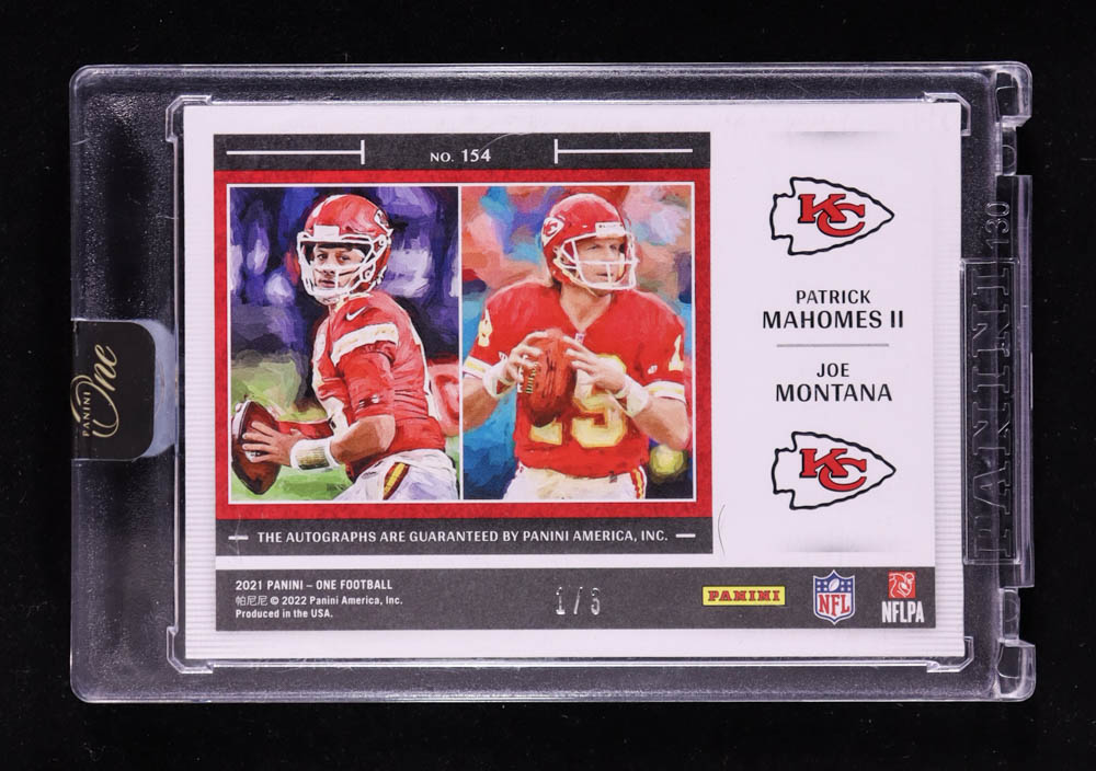 Patrick Mahomes II / Joe Montana 2021 Panini One Plus One Signatures Holo Gold #154 #1/3