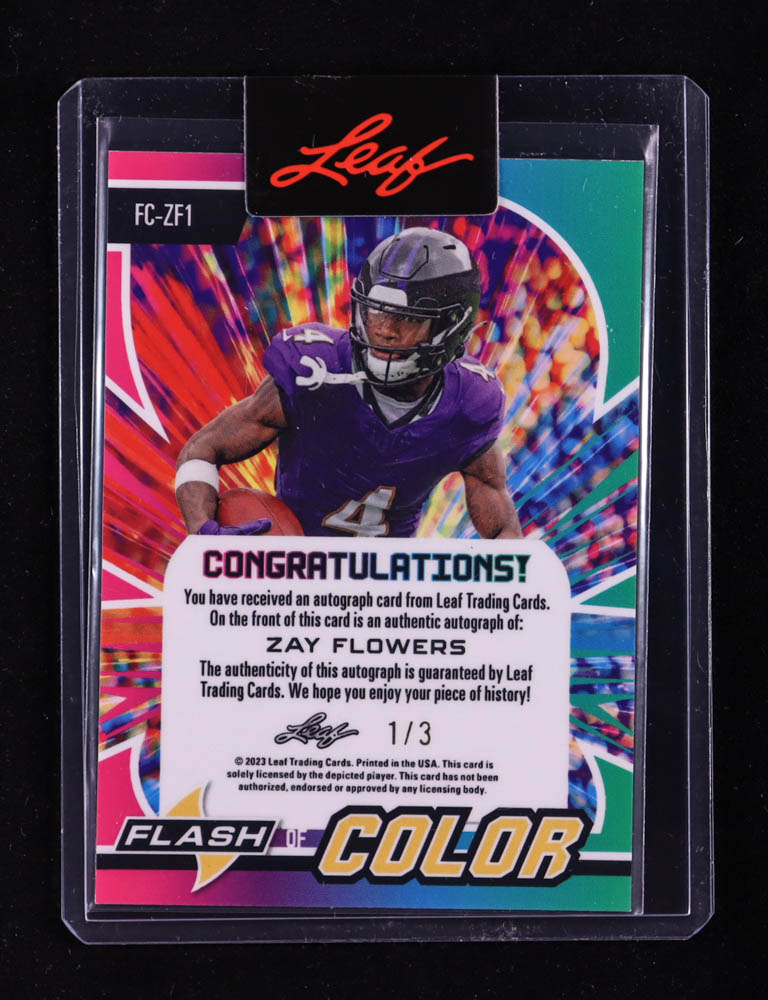 Zay Flowers 2023 Leaf Eclectic Flash of Color Autographs Sparkle Silver #FCZF1 #1/3