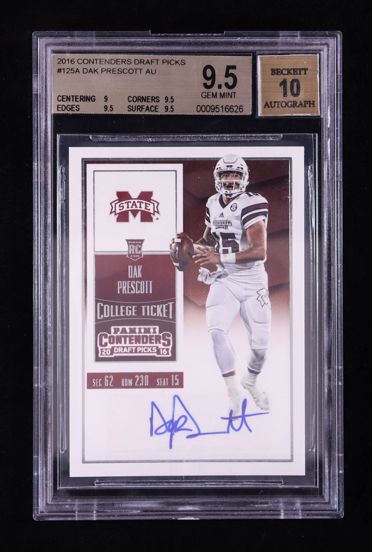 Dak Prescott 2016 Panini Contenders Draft Picks #125A AU RC (BGS 9.5 | Auto 10)