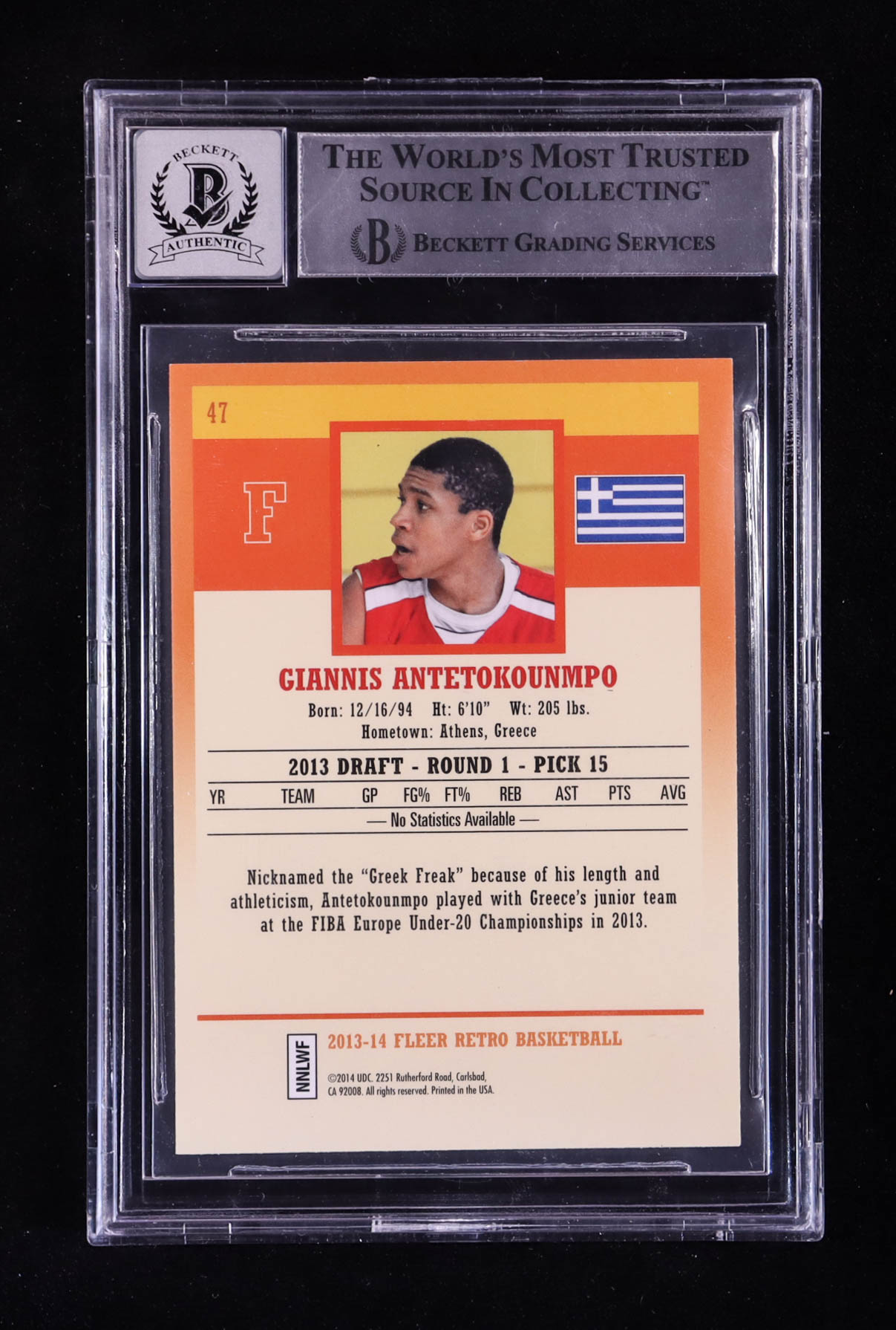 Giannis Antetokounmpo Signed 2013-14 Fleer Retro #47 RC (BGS)