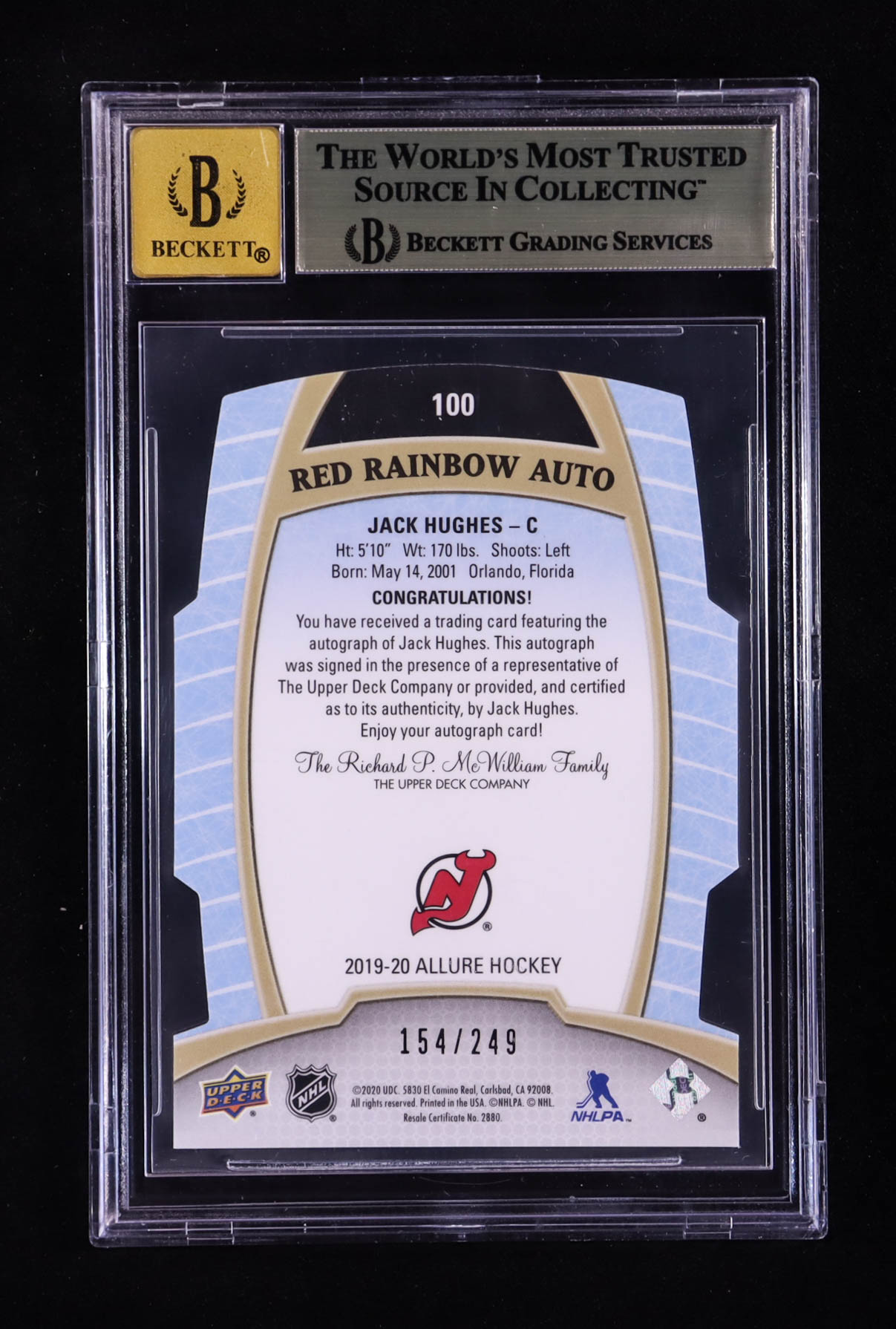 Jack Hughes 2019-20 Upper Deck Allure Autographs Red Rainbow #100 #154/249 RC (BGS 9.5 | Auto 10)