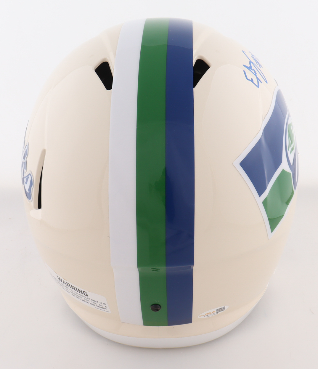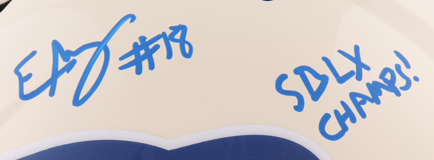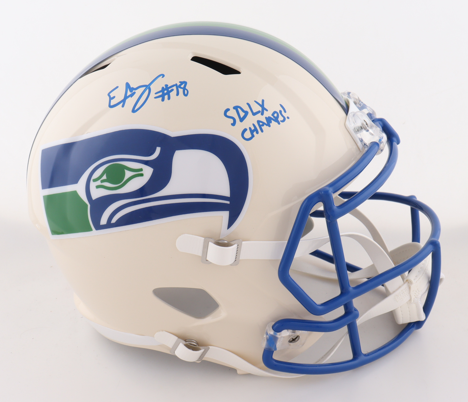 Riddell Seattle Seahawks full-size Retro Alternate replica speed helmet has been hand-signed and inscribed by Elijah Arroyo.