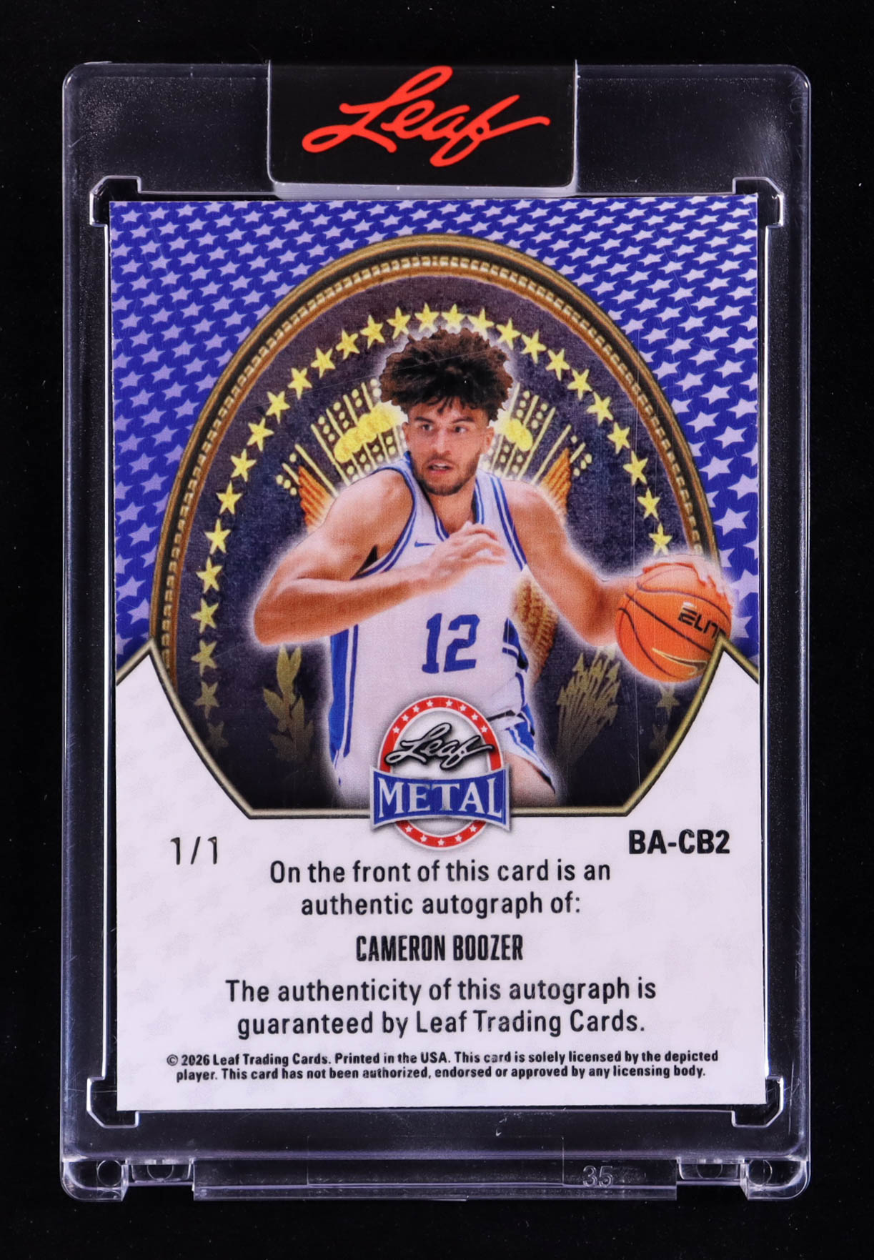 Cameron Boozer 2025 Leaf Metal President's Day Autographs John Adams Prismatic Purple #BACB2 #1/1 RC