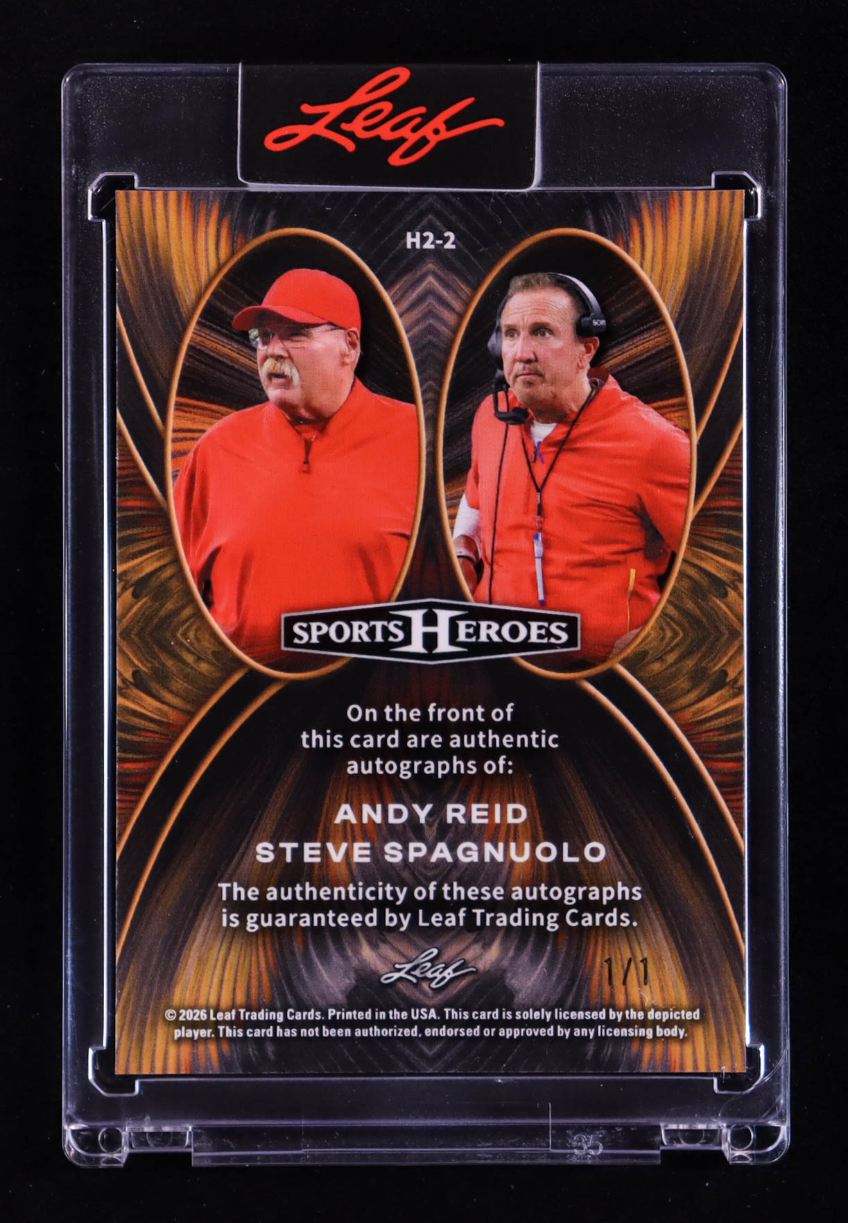 Andy Reid / Steve Spagnuolo 2026 Leaf Sports Heroes Dual Autographs Orange Shimmer #H22 #1/1