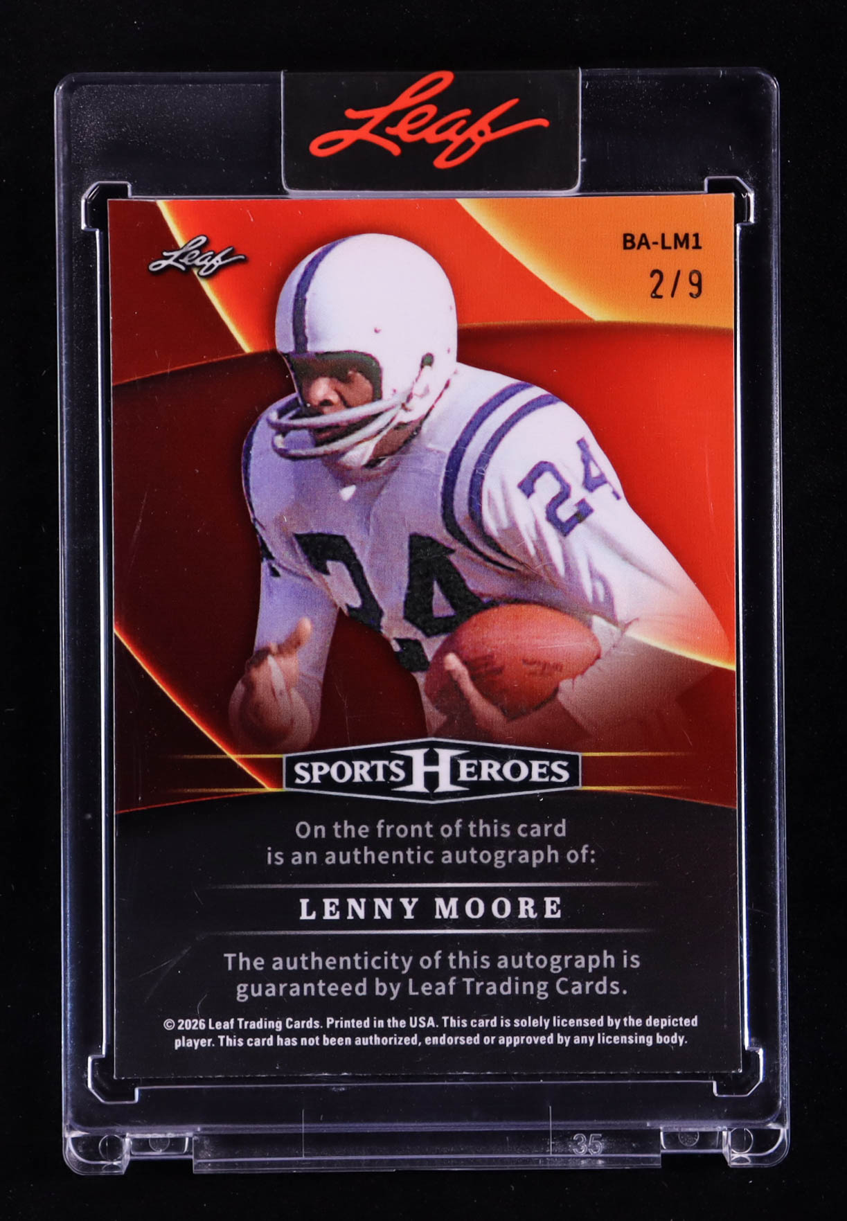 Lenny Moore 2026 Leaf Sports Heroes Autographs Prismatic Silver #BALM1 #2/9