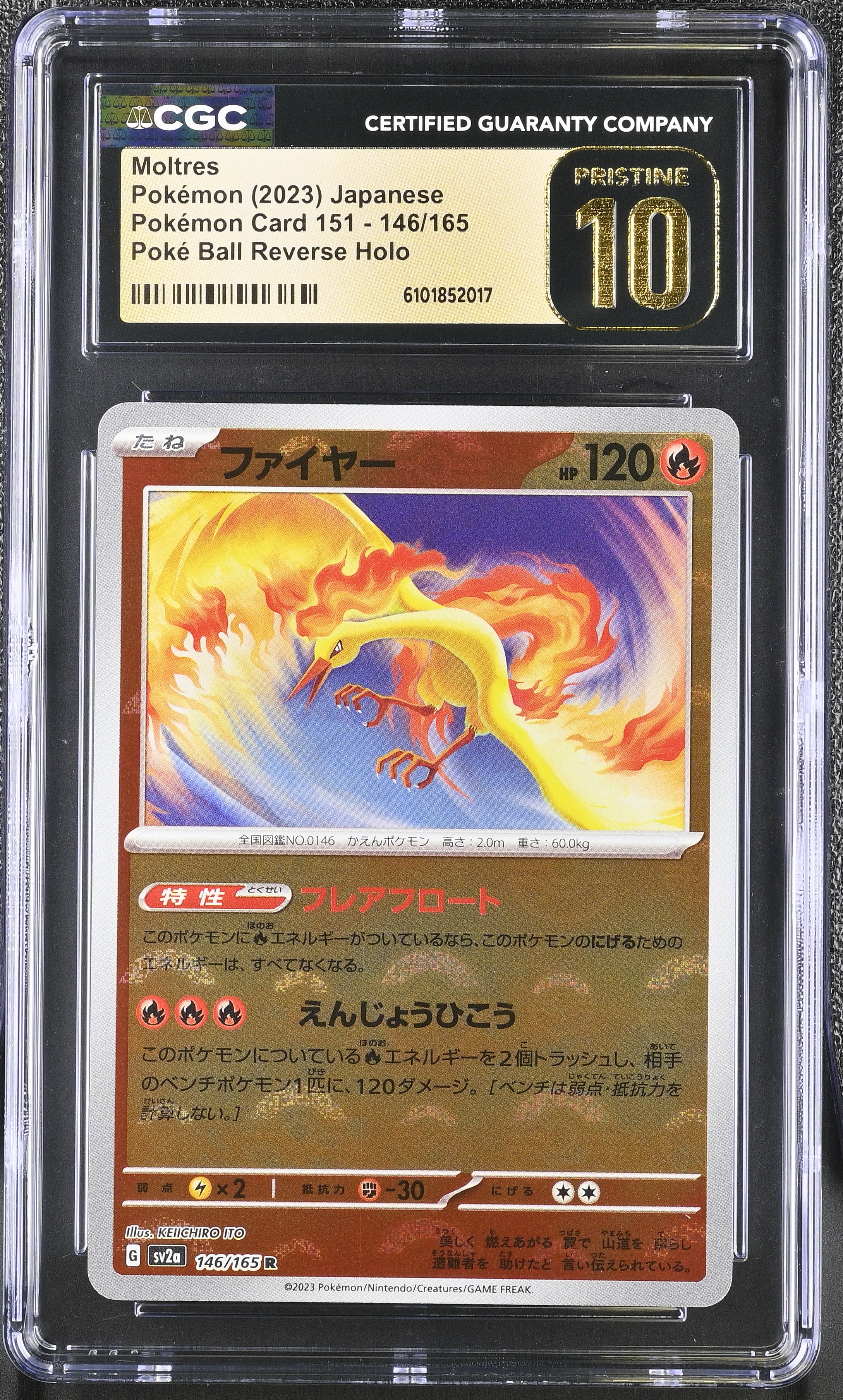 Moltres 2023 Pokemon Card Game Scarlet & Violet 151 Enhanced Expansion Japanese Poke Ball Reverse Holo #146 (CGC 10 | Black Label)