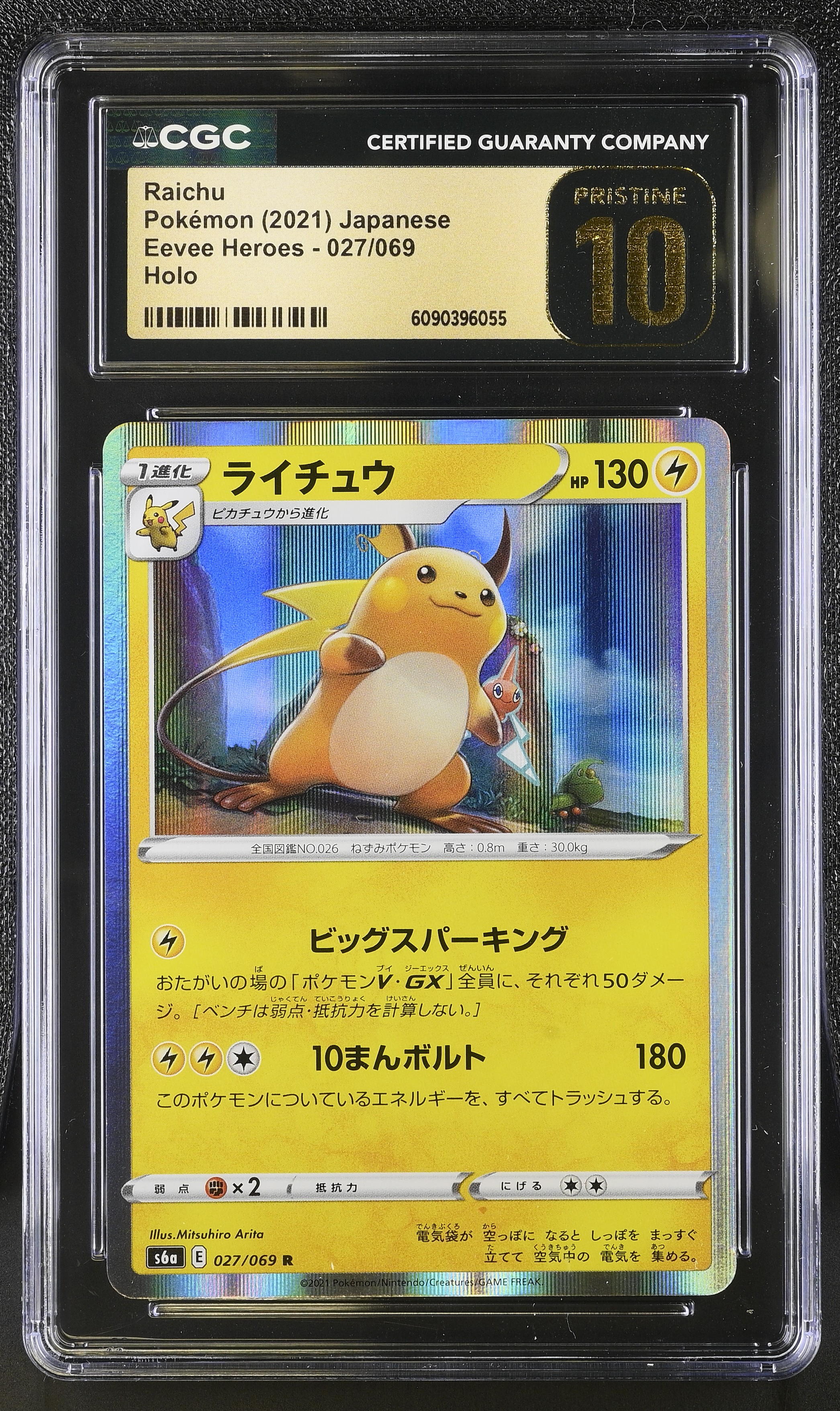 Raichu 2021 Pokemon Card Game Sword & Shield Eevee Heroes Enhanced Expansion Japanese Holo #027 (CGC 10 | Black Label)