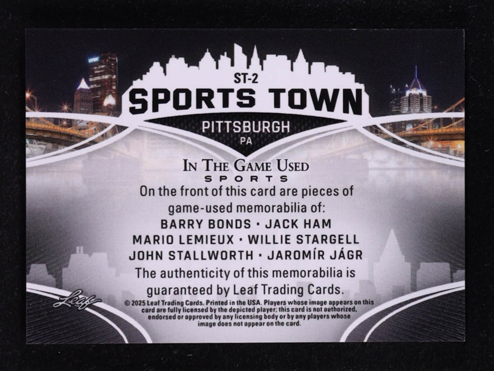 2025 Leaf ITG Used Sports Sports Town Blue #ST2 Barry Bonds / Mario Lemieux / John Stallworth / Jack Ham / Willie Stargell / Jaromir Jagr #23/35