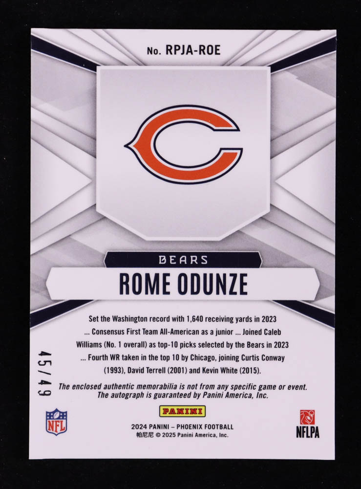 Rome Odunze 2024 Panini Phoenix Rookie Phenoms Jersey Autographs Blue #4 RC #45/49