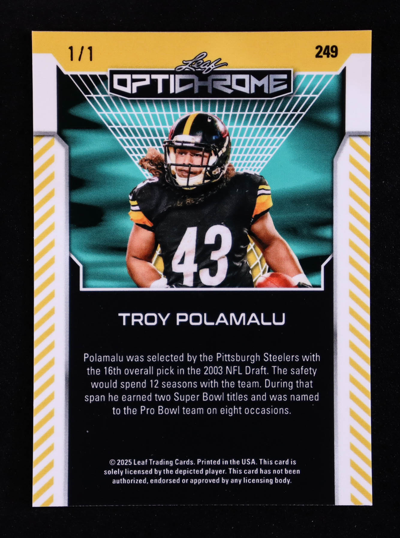 Troy Polamalu 2025 Leaf Optichrome Metal Lava Gold #249 #1/1