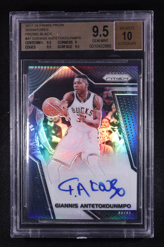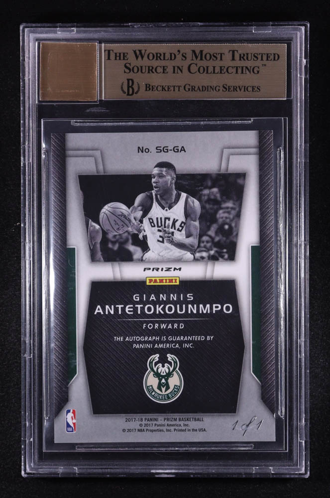 Giannis Antetokounmpo 2017-18 Panini Prizm Signatures Prizms Black #47 #1/1 (BGS 9.5 | Autograph Grade 10)