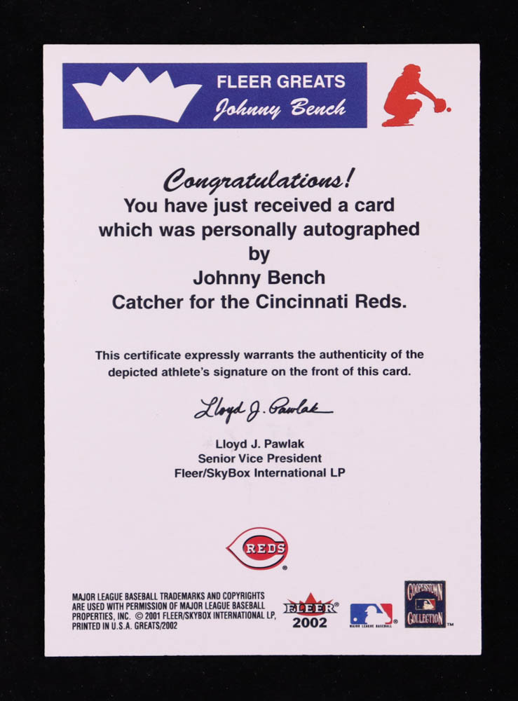 Johnny Bench 2002 Fleer Greats Autographs #87 #090/140
