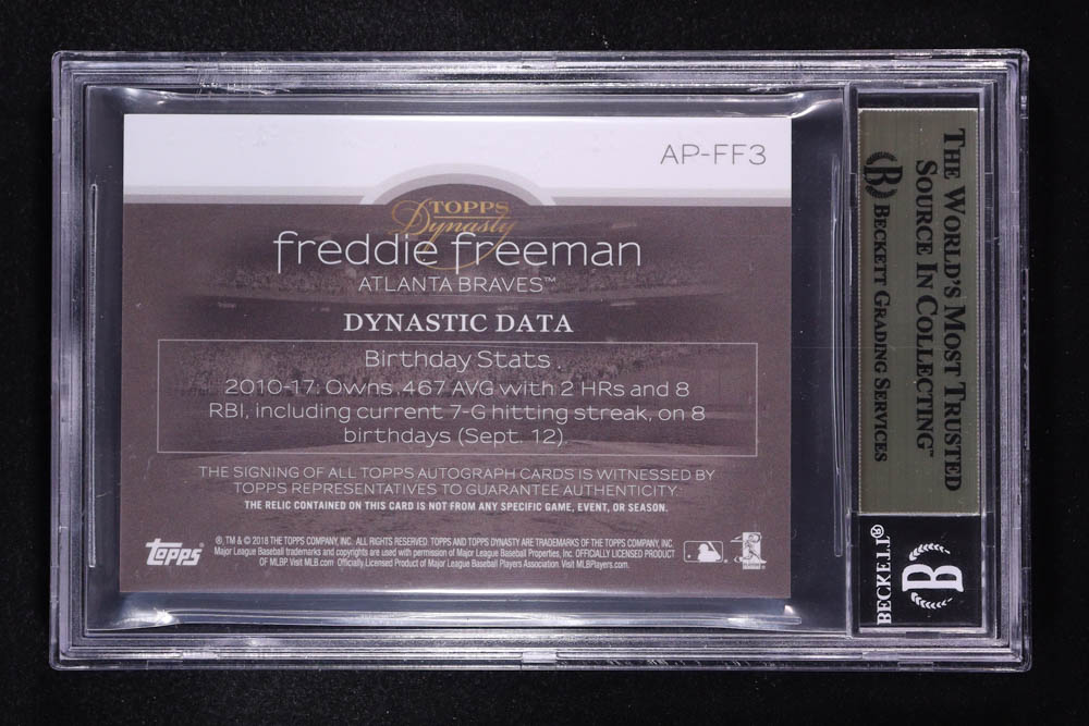 Freddie Freeman 2018 Topps Dynasty Autograph Patches Gold #APFF3 #1/1 (BGS 9.5)